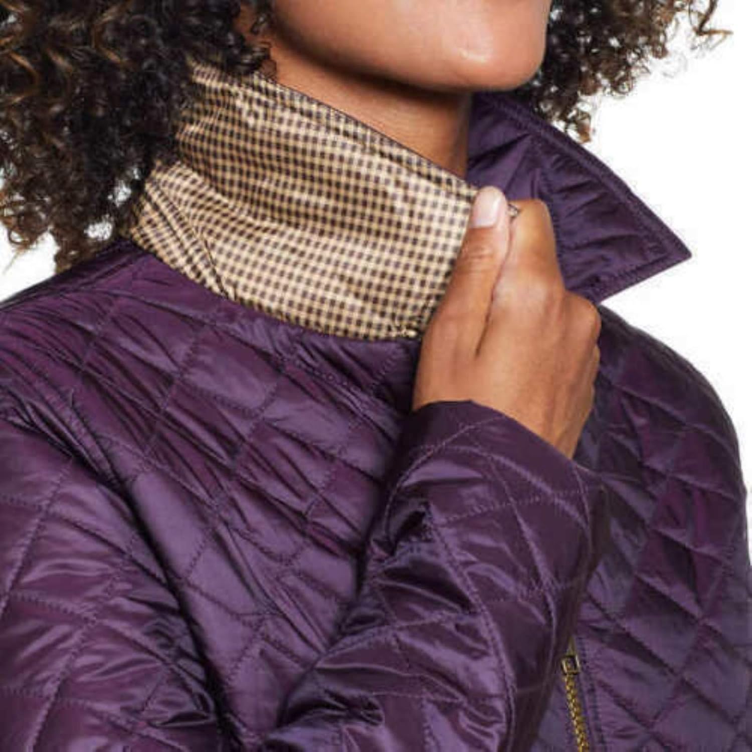 Introducing the Ladies’ Quilted Comfy Jacket in a luxurious Plum hue, tailored to perfection in a size Small. This stylish and cozy jacket is the perfect addition to your winter wardrobe, combining fashion and functionality effortlessly.